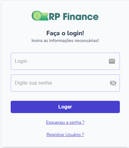 Para fazer login no software você precisa acessá-lo através do link: https://rpfinance.com.br e clique no link ACESSAR.