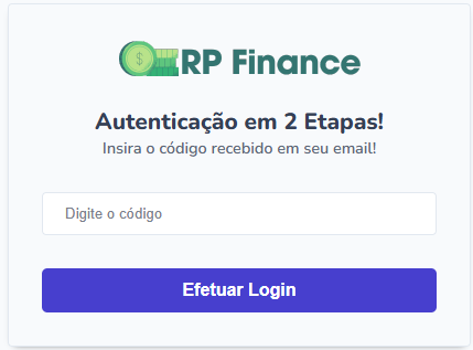 Após clicar em logar verifique o seu e-mail para obter o código de autenticação para efetuar o login no RP-Finance.